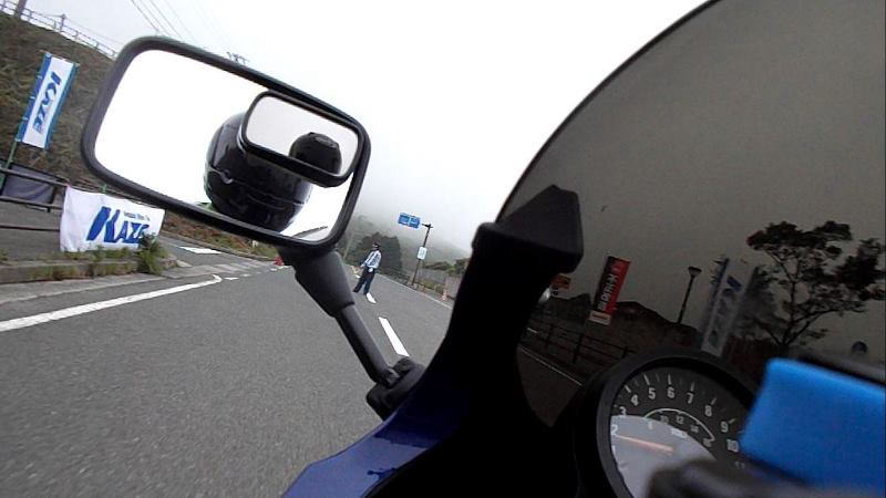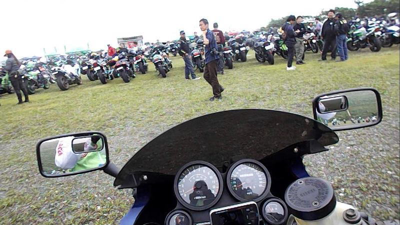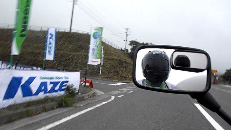 会場に到着です。前方にカワサキバイクマガジン副編集長